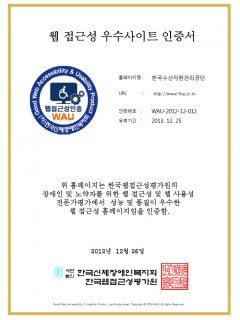 웹 접근성 우수사이트 인증서